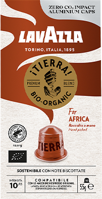 ONTDEK MEER¡Tierra! for Africa is een biologische en met de hand geplukte koffie, geteeld in Oost-Afrika, waar Lavazza boeren traint in het ondernemerschap. Ook gebrand en gemalen verkrijgbaar.